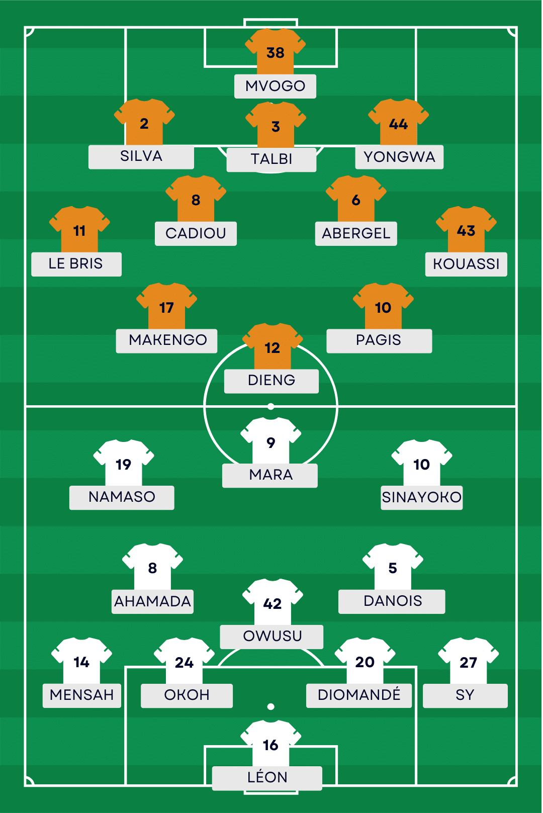 AbsentsTouré, Sanusi, Fadiga, Faye, Leroy (blessés, reprise).