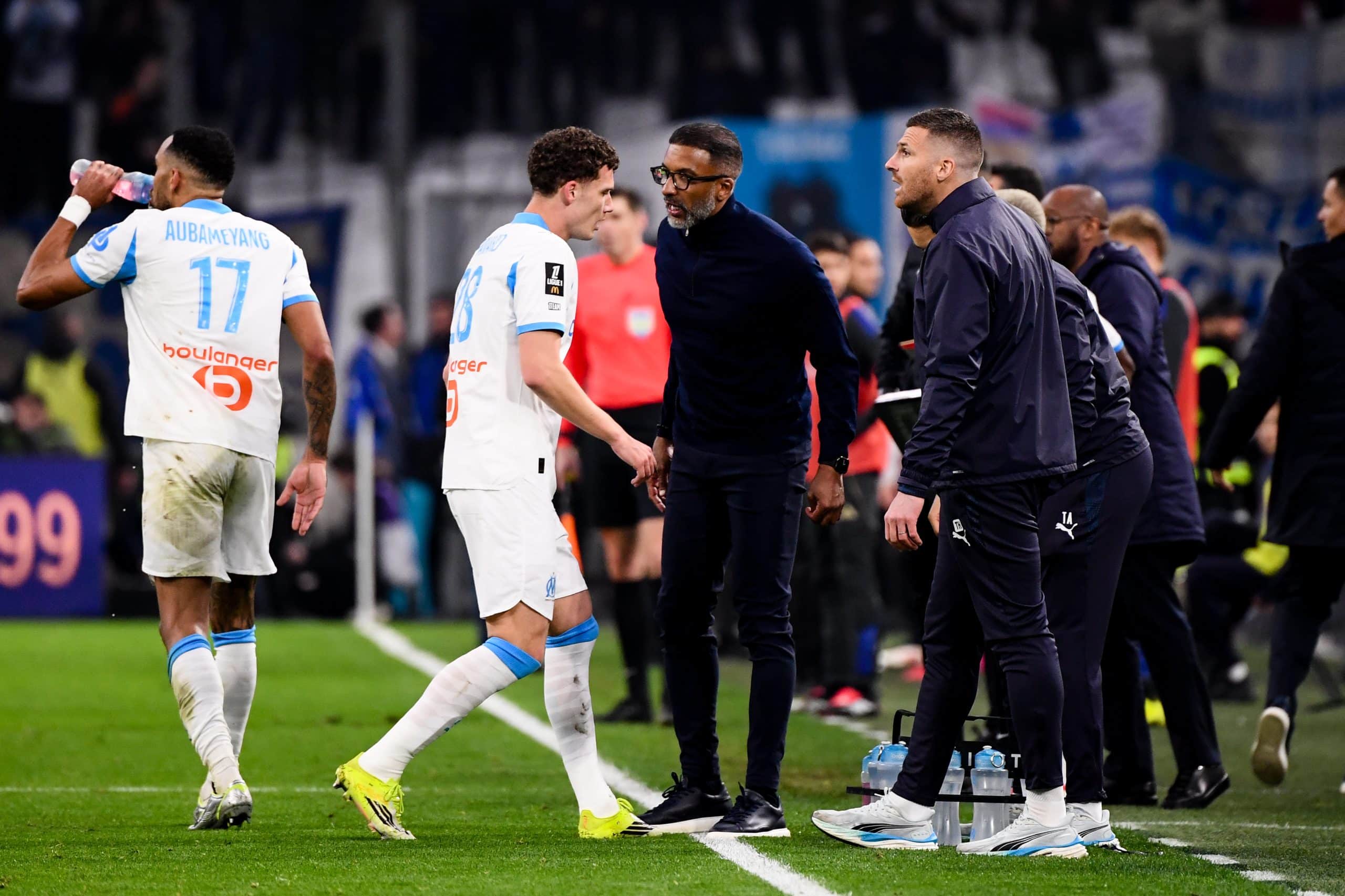 Selon L’Equipe, Beye devrait aligner dans les buts Rulli, et non De Lange qui a joué tous les matches de Coupe jusque-là. En défense, il optera pour Weah, Balerdi et Aguerd, comme face à Lyon, mais titularisera Medina à gauche plutôt qu’Emerson. Au milieu, Kondogbia sera reconduit, avec Nnadi, pour qui ce serait la première titularisation. Enfin, en attaque, ce sera le même quatuor qui a terminé le match contre Lyon, à savoir Nwaneri à droite, Greenwood dans l’axe, Paixao à gauche, et Aubameyang en pointe.