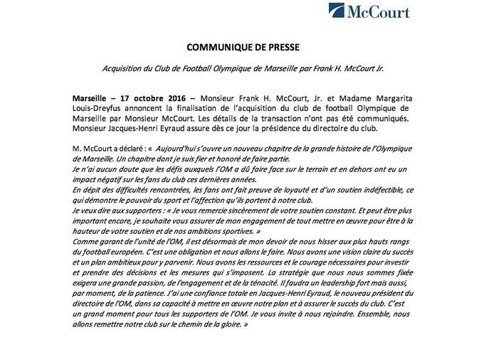 OM : le club vendu à Frank McCourt (officiel) !